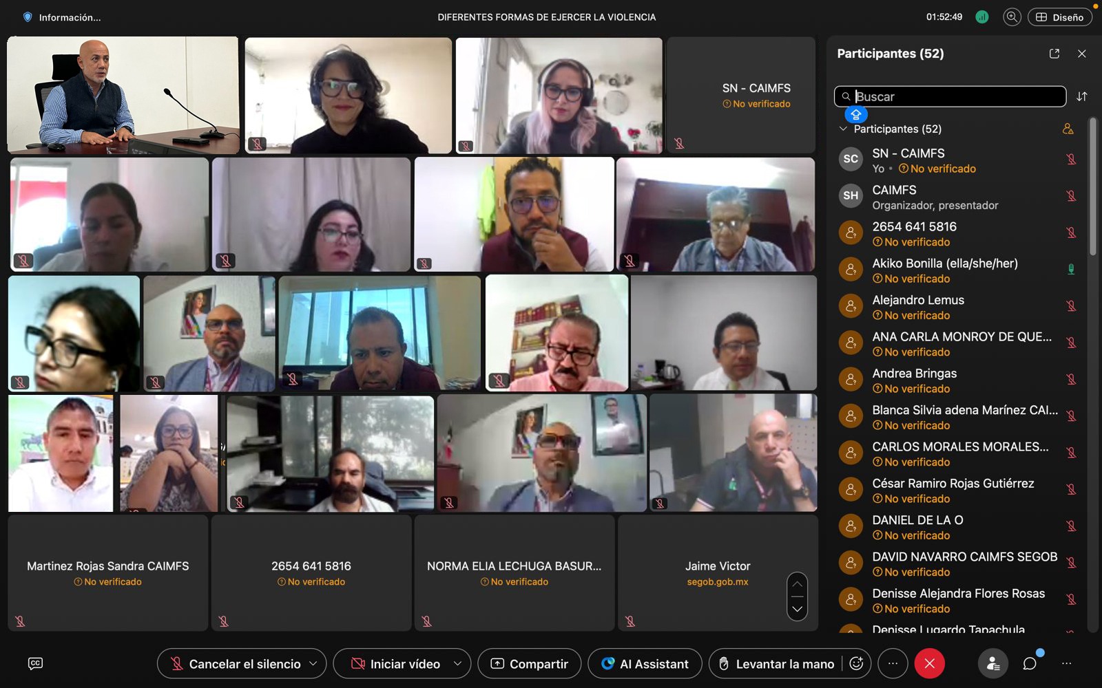 Dicha actividad fue dirigida a personas servidoras públicas de la CAIMFS y de los gobiernos estatales y municipales de las cuatro entidades de la frontera sur, con la intención de permitirles visualizar las diferentes formas en que pueden ser violentadas las mujeres migrantes, ofreciéndoles herramientas de intervención para atenderlas con perspectiva de género.